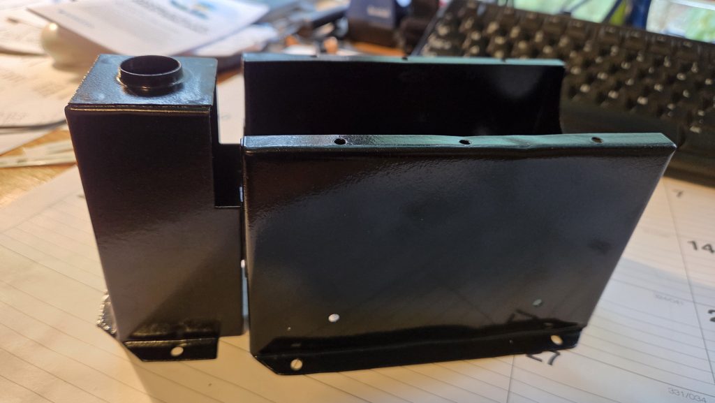 Cleaned the boiler base with Evap-O-Rust after removing the boiler. Applied Duplicolor Engine Black paint. Painted the smoke stack base as well.