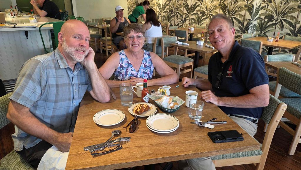 We spent the day with Charlie, mostly around his home in Three Oaks, MI. We had brunch, walked around town, hung out and played cribbage, went shopping for peaches at a local farm market, and ended the day at a friends house, for a nice visit and dinner cooked by Charlie.