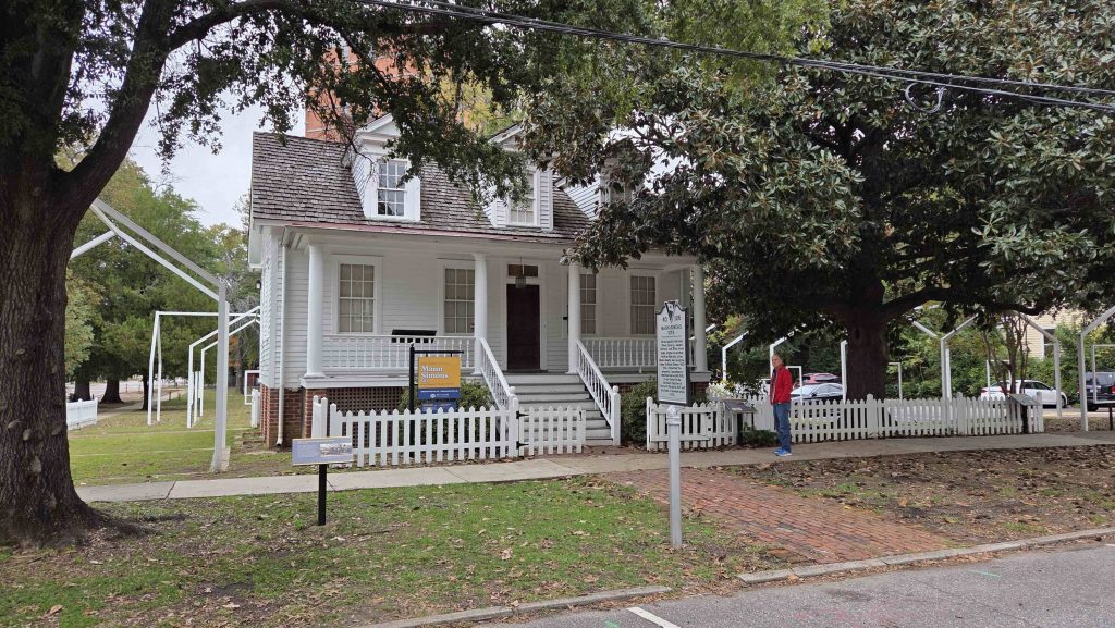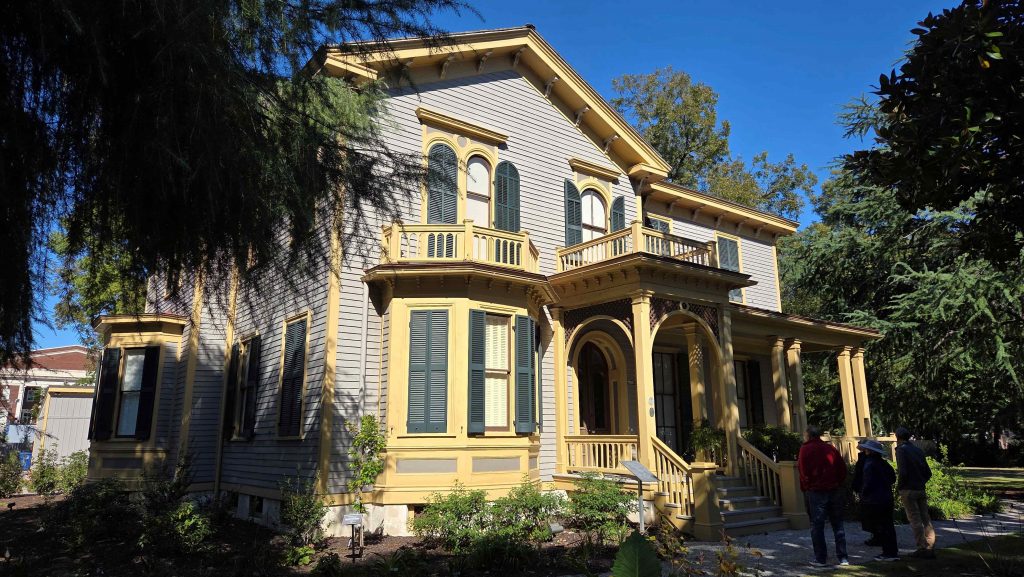 - Saturday, we visited the Robert Mills Historic District and took 2 of 4 Historic Columbia House Tours. We started at the Robert Mills House, showcases the skill of the architect (Robert Mills) who designed some of our nation’s most prominent buildings, including the Washington Monument. It is also used to illustrate how enslavers and enslaved lived ante-bellum, and has an exhibit on Mary Boykin Chesnut, whose Civil War autobiography Gail has read. Then we toured The Museum of Reconstruction Era at the Woodrow Wilson Family Home, the only museum dedicated to interpreting the post-Civil War Reconstruction period and South Carolina’s only remaining presidential site. This distinctive circa-1871 Italian villa-style residence was home to a 14-year-old boy named “Tommy” Woodrow Wilson.