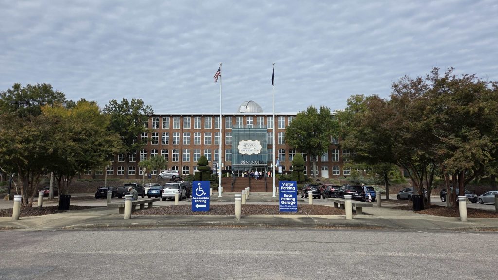 - Sunday we visited the South Carolina State Museum, along the banks of the Congaree River. WOW! It has four floors of exhibits, which we spent ~2.5 hours exploring before we had to go to our tour (above). We also saw the Icelandic show, Áróra, about the Northern Lights, in the planetarium. We returned on Tuesday for a couple more hours, to explore what we missed on Sunday. We even got to see “real time” sun flares in the observatory (funded by Boeing).