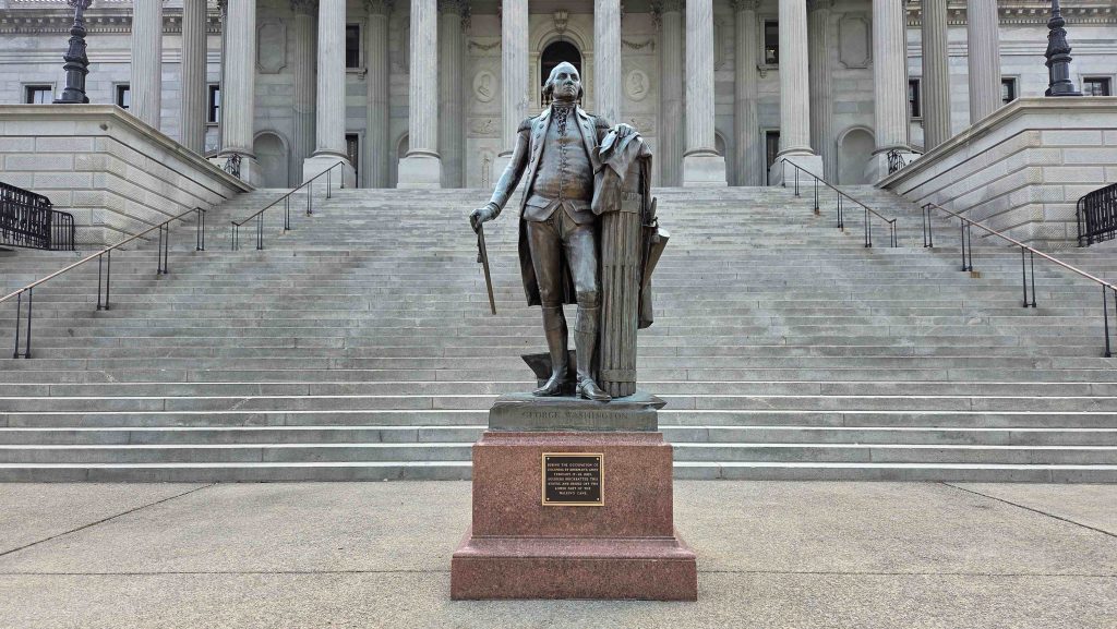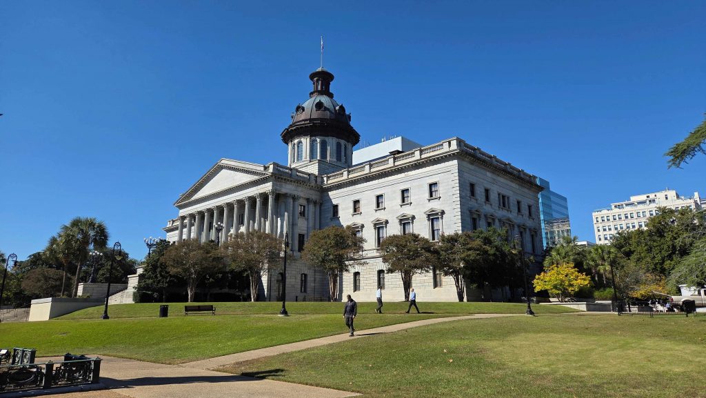 - South Carolina State Capitol in Columbia (#45), whose founding was similar to North Carolina, in that Columbia was picked to be the capitol of South Carolina after the War for Independence, to get it away from the coast and make it more central, and it was designed to be the capitol. It is a beautiful and charming building, which took 56 years to complete. It was stalled, almost complete, with the advent of the Civil War in 1861. Partially destroyed by Sherman in 1865, it wasn’t fully completed until 1907. You can see 5 places where Sherman’s cannan balls hit the building.