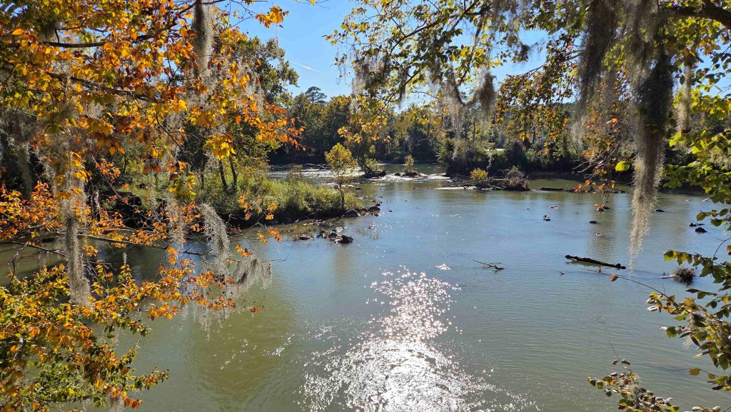 - Tuesday afternoon we also had a picnic at the nearby Columbia Canal and Riverfront Park. There we learned its history and took a (very short, due to construction) walk along the Canal Towpath, on the very skinny island between the Congaree River and the Canal.