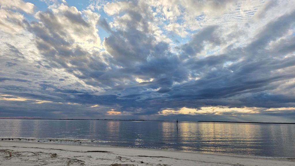 We got to Jekyll Island and set up camp early enough to do a little exploring (only day that wasn’t totally COLD). We checked out the Wanderer Memorial Trail, which tells the story of one of America’s last known slave ships, the Wanderer. It’s located at Saint Andrews Beach, where the ship illegally came ashore 160 years ago (50 years after the Trans-Atlantic Slave Trade was abolished) with more than 400 enslaved Africans. It was very well done. We also caught a gorgeous sky.