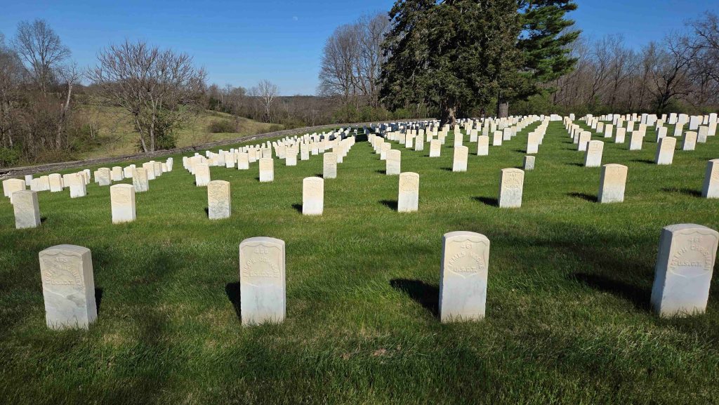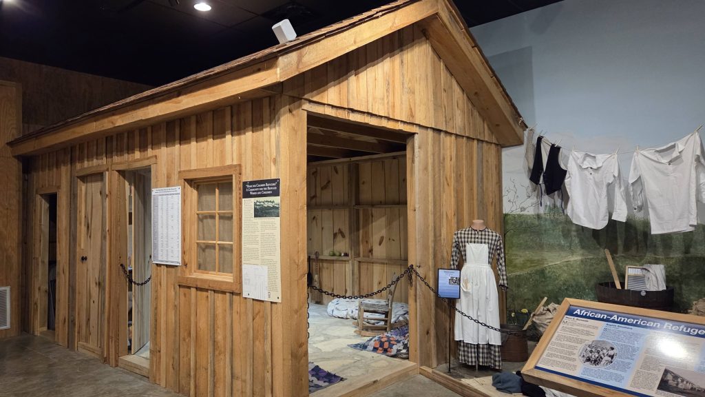 We arrived in time for the last winter lecture, “As Humanity Will Permit, the Closing of Camp Nelson”, thus getting more context and background for the Camp Nelson story. Only in existence 3 years, half of that was it’s “closing.” We spent quite a bit of time in the museum, which was great at telling the story of Camp Nelson and had some interesting “full scale” exhibits showing what it might have been like in the camp. We hiked around the grounds a bit, getting just a taste of how big the camp was (the National Monument is a fraction of what was the camp). We also briefly visited the Home for Colored Refugees Site and the Camp Nelson National Cemetery.