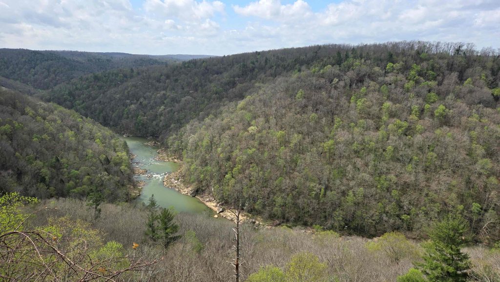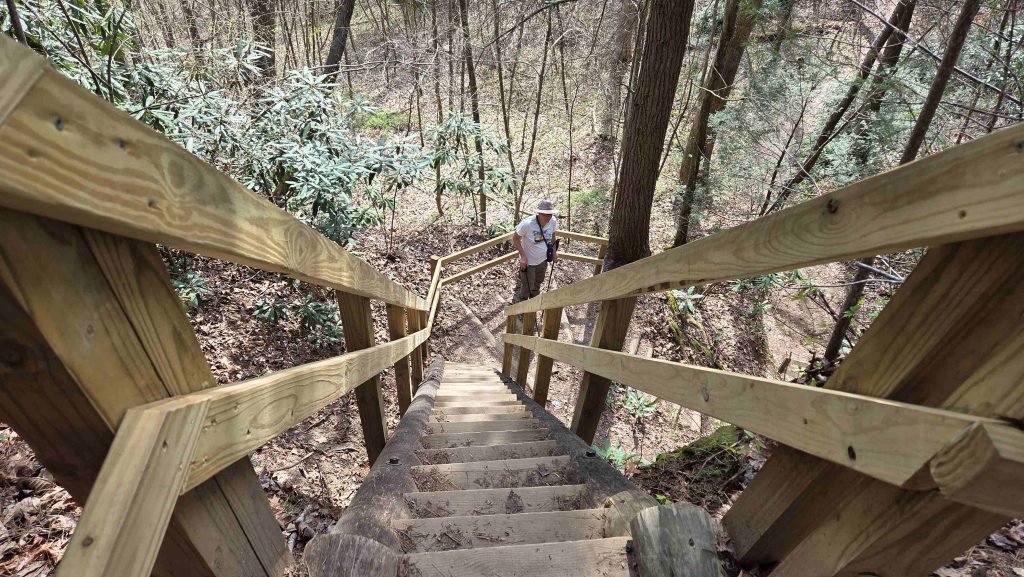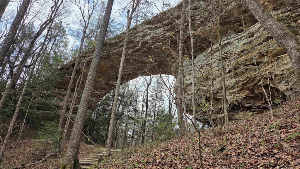 Four nights camping within the Cumberland Plateau region of Tennessee and Kentucky, characterized by deep gorges cut into sandstone by rivers. Which meant, among other things, that it was “fun” driving here, especially getting here with Lizzy…up and down and around. We came down the west side of the park to avoid the steeper, curvier entrance from the east! Much of the hiking we did could be characterized the same way. But we had 3 Great Days…
