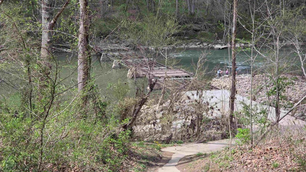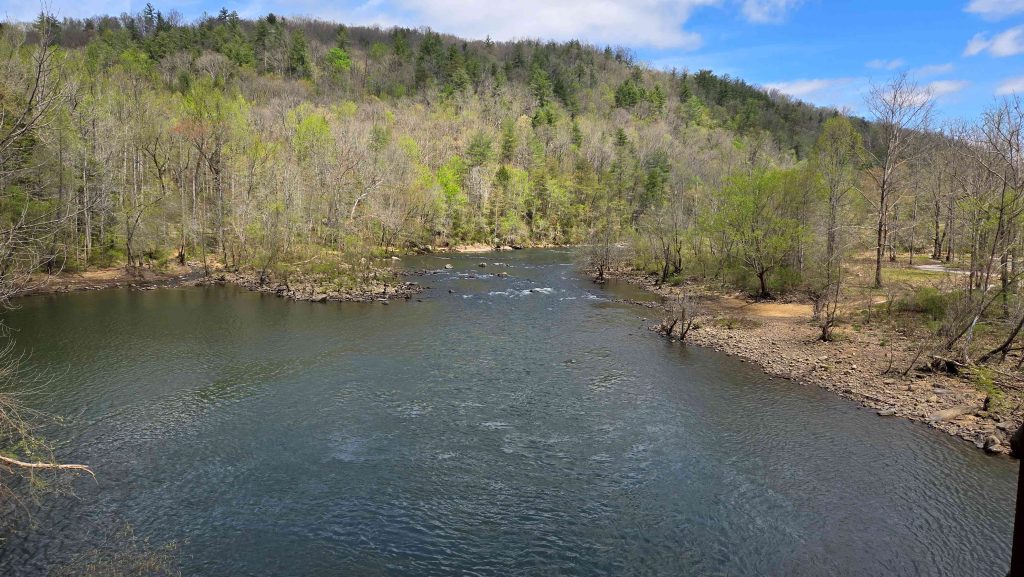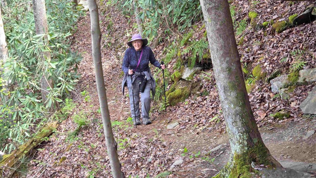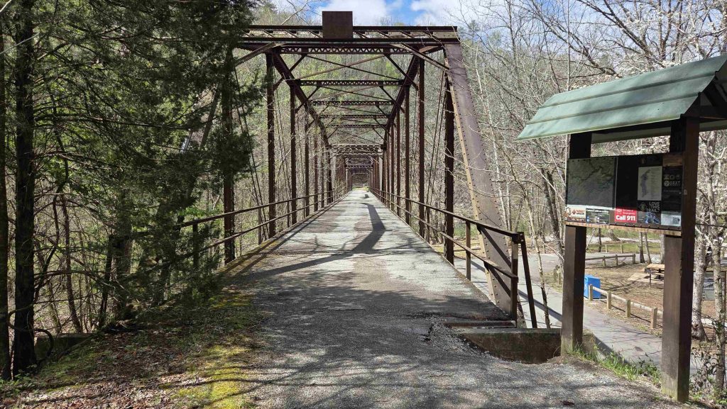 Yesterday, a 20-25 degree cooler day, we did a day trip south to the Obed, an hour drive to the Visitor Center in Wartburg, TN. Most of our time was spent around Nemo, where we walked across the Emory River on the old railroad bridge and did the Nature hike there. Back across the river, we hiked up it to its confluence with the Obed River. Last stop was to Lily Bluff, where we took a short hike to a great overlook, above where Clear Creek empties into the Obed. Only ~4 mile hiking day.