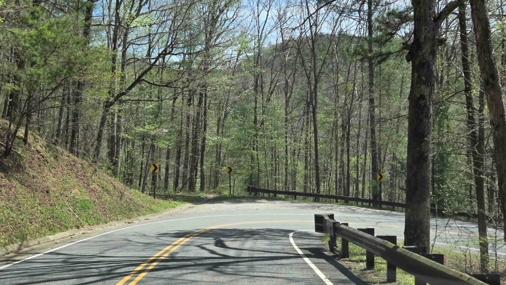 …on the Tri-State Border of Kentucky, Tennessee, Virginia! Since Cumberland Gap is East of the Big South Fork, we exited the park going east. Hence Mark drove Lizzy out through that steeper, curvier entrance, which we now know is steep, from going down to the river at Leatherwood Ford and back up the other side to Oneida. Strangely, not as back heading east as it would have been going west, due to rock formations. Also “better” when you get it out of the way at the beginning of a drive, rather than at the end. The rest of the way to Cumberland Gap was a relative breeze.