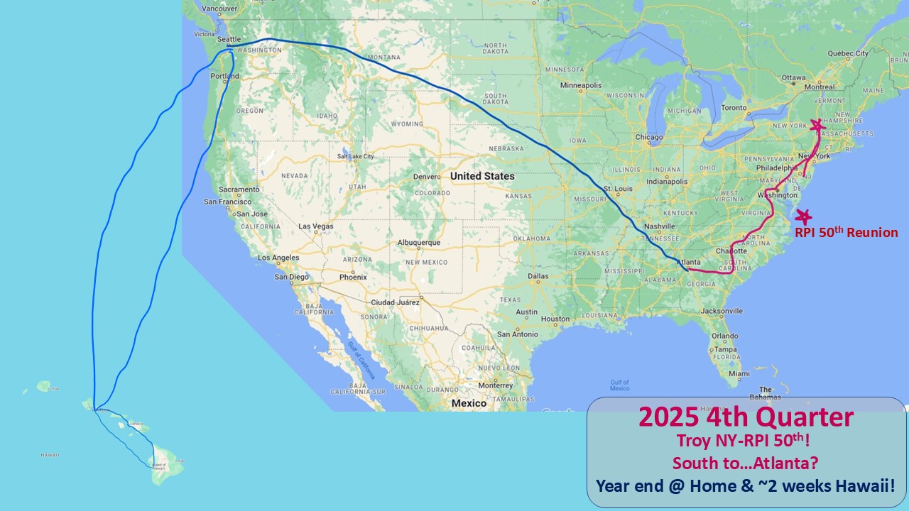 4th Quarter 2025 to 1st Quarter 2026 Plans…wrapping up 3Q2025, home for the holidays! 2026 will start in NJ with family and then back to Charleston to pick up Lizzy and head to Florida for most of February.